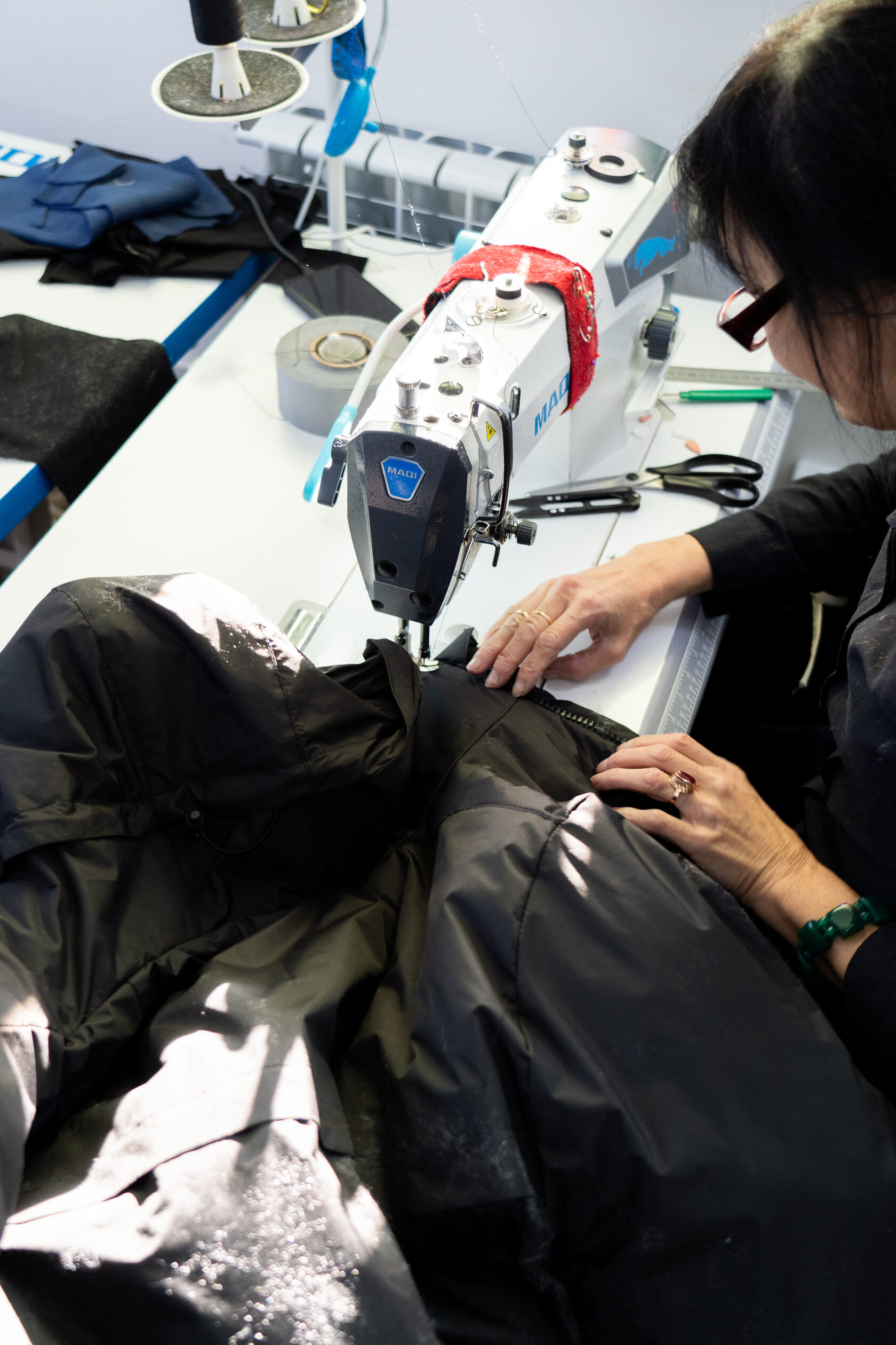 Пошив больших партий швейных изделий. С помощью специального оборудования выполняется пошив, влаготермическая обработка швов и узлов, окончательная термообработка готового изделия.